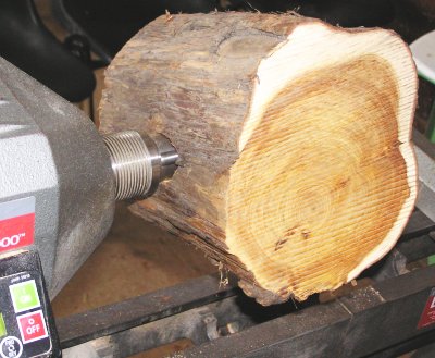 First a hole is drilled to match the size of the pinchuck. The pinchuck is mounted on the lathe with the pin central at it's lowest point. The wood is pushed on by hand and twisted to lock. Untwist to unlock. What happens is that the pin rolls until it jams in the hole to lock the pinchuck in the wood.